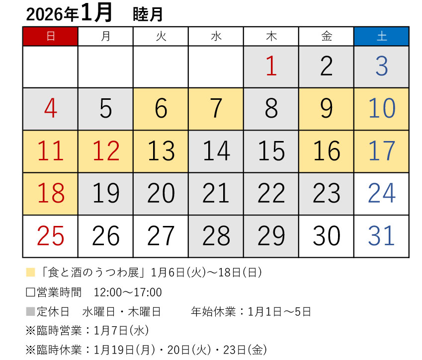 「新春 食と酒のうつわ展」2026年1月6日(火)~18日(日)開催中、来店お待ちしております。